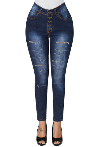 Furnished with destroyed details is an ever-lasting classic style that is always in style and an essential staple for your wardrobe. These skinny stretch jeans are fashionable and stylish as other jeans in the store, but what makes it unique is its 5 button closure. Designed with button up front is fashion trendy, which not only highlight the butts but also combine the stretch to move around in comfort. Made of 73% Cotton, 25% Polyester, and 2% Spandex, the fabric is durable and stretchy. Even after repeated wearing, the denim stays to its original form and offers all-around ease and roominess. They are flattering on hourglass shaped body, as they compress the body for a firm form fitting to show your beautiful figure. If you’re a mommy, no worries, the waist is high enough to cover your stomach. Style these high rise ripped jeans with a simple basic tee, cropped top, or flowy blouses for an effortless style.