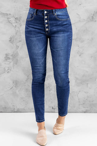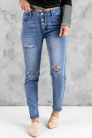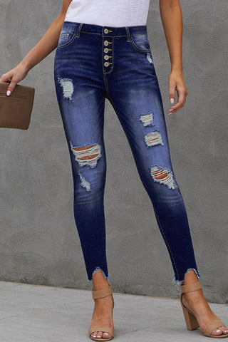 Best5. BLUE BUTTON FLY HIGH WAIST RIPPED SKINNY FIT ANKLE JEANS